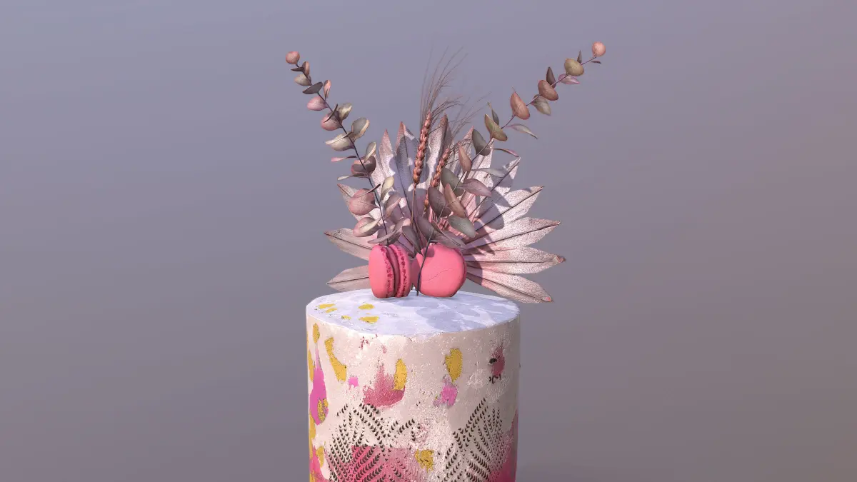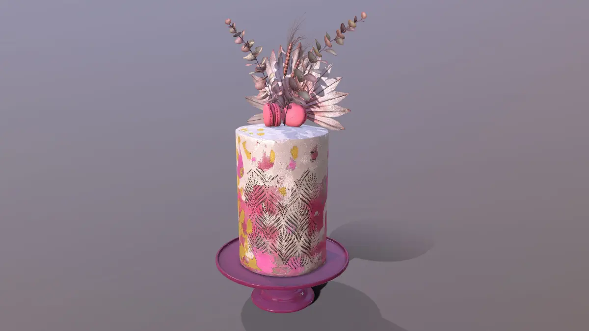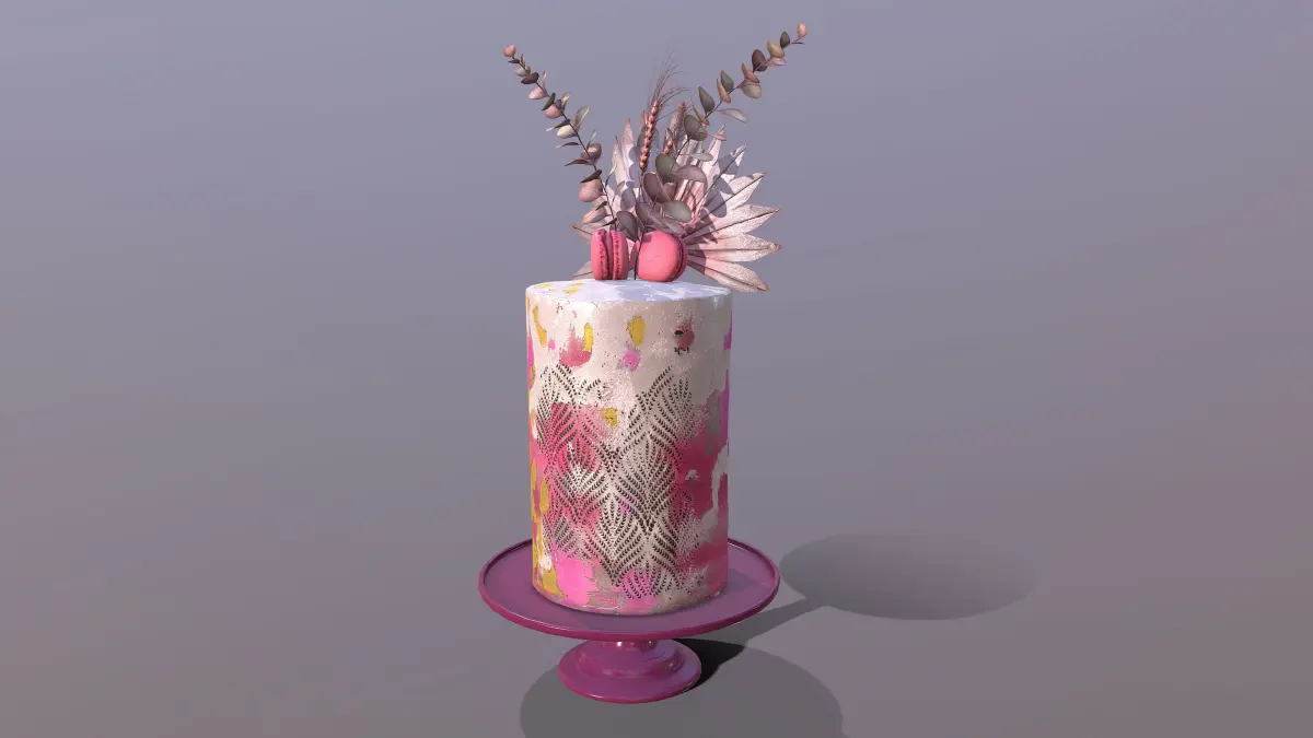 3D scan of a Luxury Golden Pink Buttercream Cake on the elegant mosser stand which is made by CAKESBURG Online Premium Cake Shop in UK.