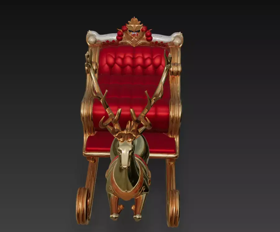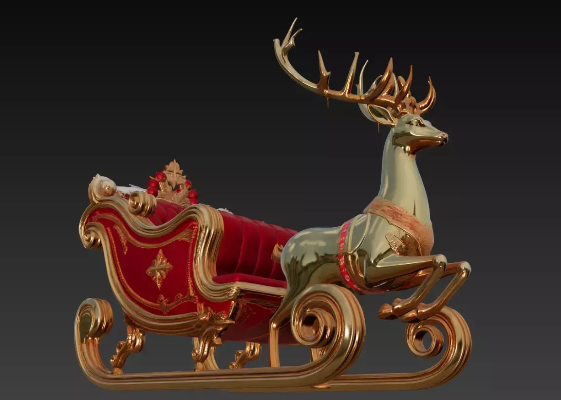 This Luxury Golden Reindeer Sleigh 3D Model is an elegant and highly decorative Christmas asset designed with a rich, royal aesthetic. Featuring a majestic golden reindeer paired with an ornate red sleigh, this model reflects classic holiday luxury inspired by royal carriages and festive ceremonial designs.