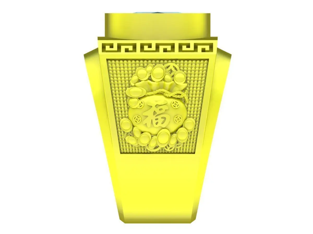 This 3D jewelry model presents a bold men’s signet ring featuring a cushion-cut center stone set in a solid rectangular bezel. The design is inspired by classical Greek key motifs, engraved symmetrically along both sides of the ring to convey strength, balance, and timeless masculinity.