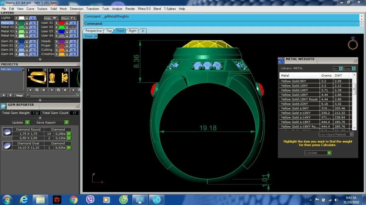 The model includes all measurements, gemstone placements, and clean topology optimized for jewelry manufacturing or professional rendering.
