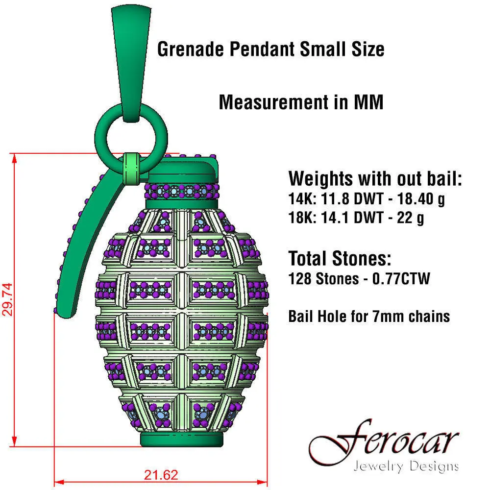 Note:There is a new Version in the link below that includes 2 different sizes, less weights and 2 new grenades models with bails:www.cgtrader.com/3d-print-models/jewelry/pendants/grenade-pendant-cad-files-pack
