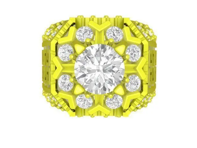 This luxury halo diamond ring 3D jewelry model is designed with a bold masculine structure and a large round center stone surrounded by a multi-stone halo setting. The thick band and strong geometry create a powerful statement ring, ideal for high-end men’s jewelry collections.