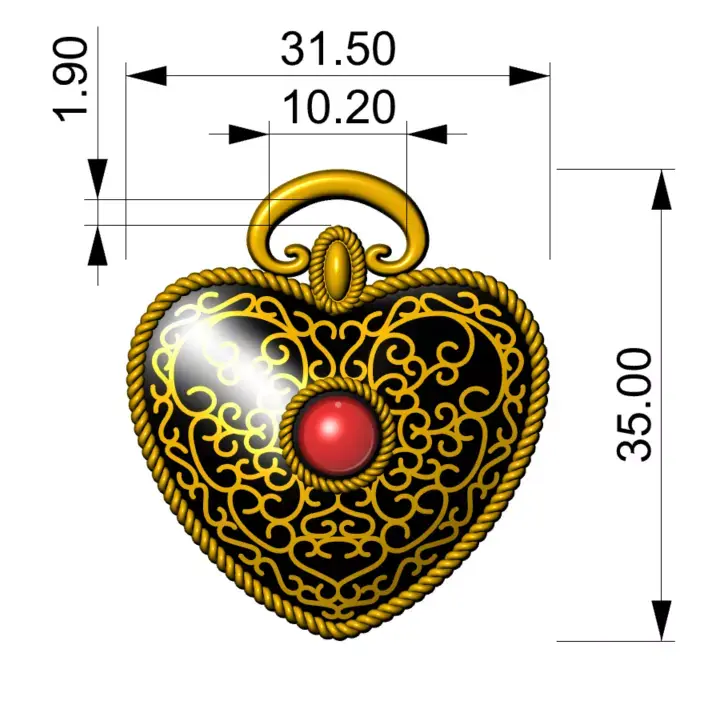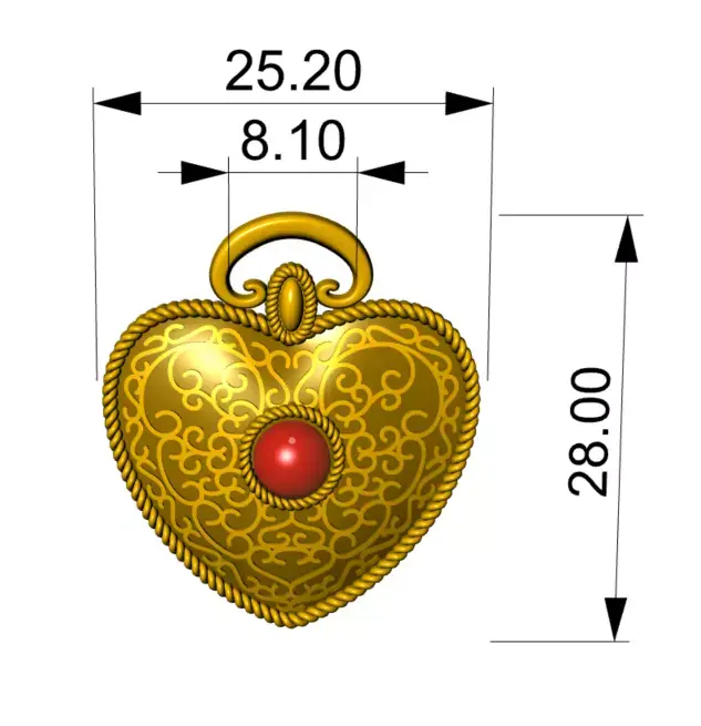 This 3D model features a decorative heart ornament, designed for zamak casting and suitable for luxury fashion hardware, bag fittings, footwear decorations, and jewelry components.The piece includes raised ornamental scrollwork, a rope-style border, and a front circular seat designed to hold stones, cabochons, ABS inserts, resin drops, or other embellishments.