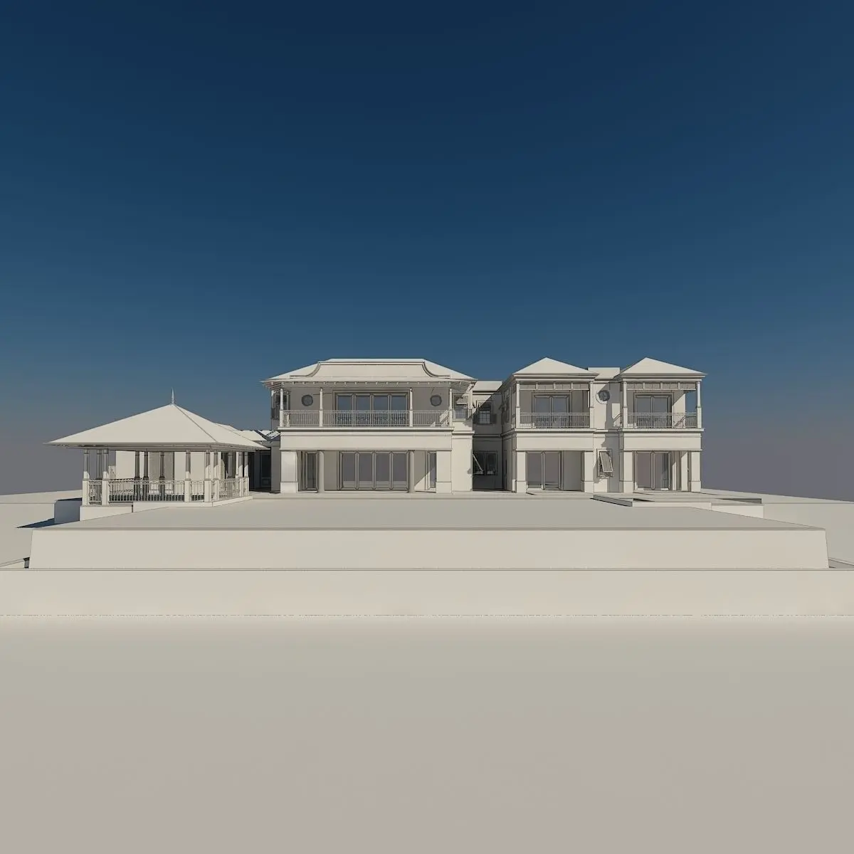 Amazing 3dmodel of luxury residence, nice for 3dgames or even for viz applications. Incredible good setup of VRay rendering, requiered to render this scene. You will have what you see. You can modify included materials to test different colors on walls, stone, pavers, roof, etc.