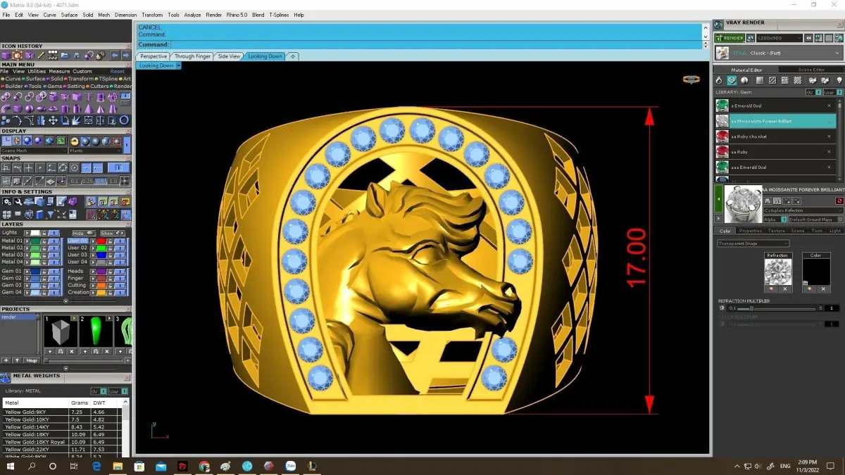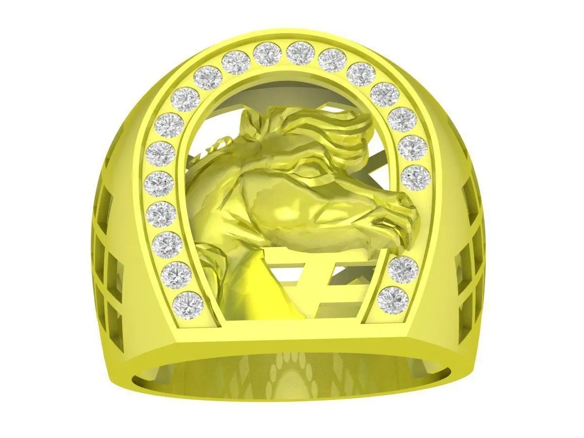 The horse head is carefully modeled with clear facial definition, balanced proportions, and strong relief depth, ensuring excellent visual impact after casting and polishing. The surrounding stone layout is precisely aligned, allowing secure stone placement and consistent spacing. The ring band is designed with a solid structure and decorative side cutouts to reduce weight while maintaining durability and comfort.