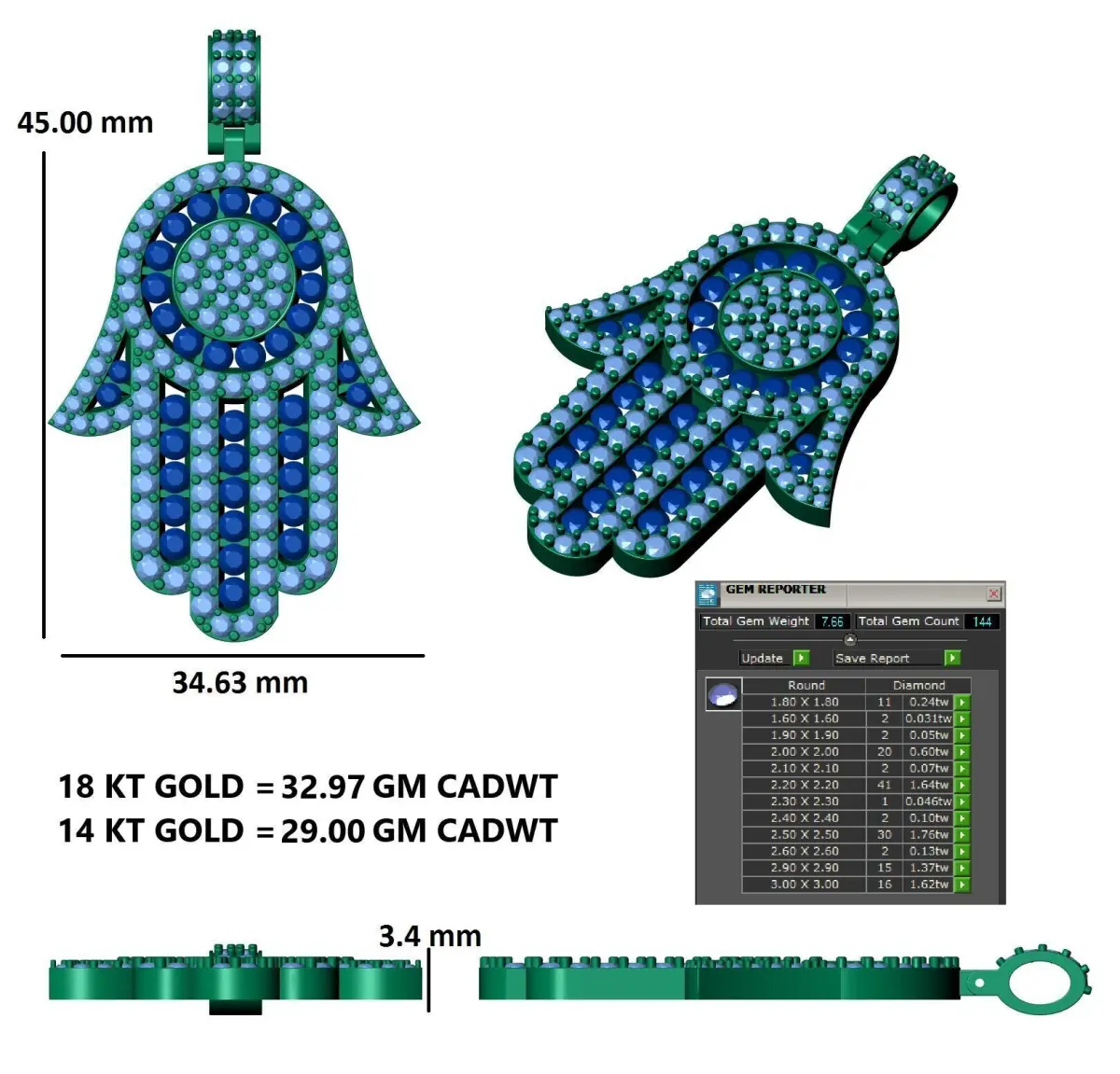 - Pendant DimensionsHeight: 45.00 mmWidth: 34.63 mmThickness: 3.4 mm