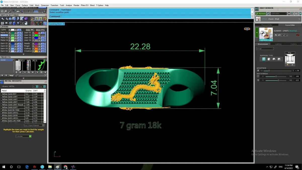 This professional 3D jewelry model is optimized for CNC machining, resin 3D printing, and precious metal casting. All preview images include complete dimensions, weight estimation, and technical specifications to support accurate manufacturing and customization.