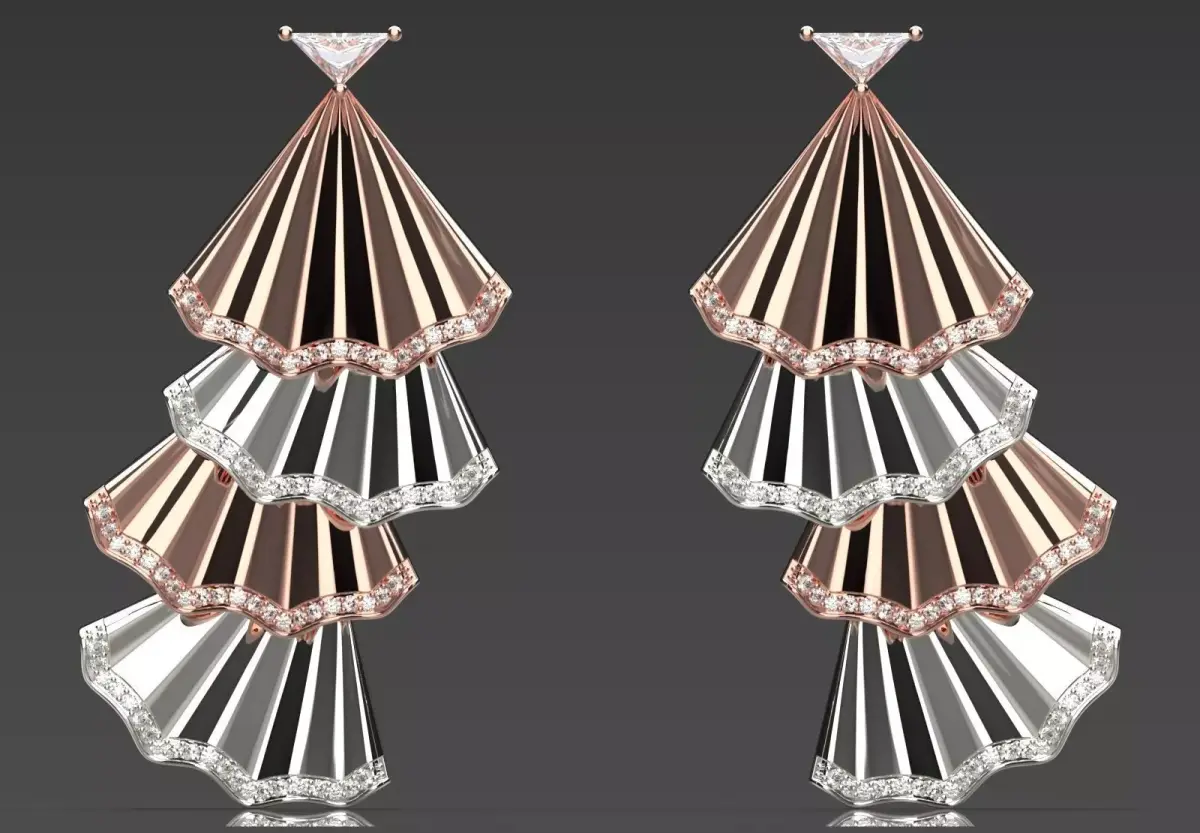 - Cascade/Step Shape: The earrings are made up of four conical layers that hang from each other in a step-like manner, creating a cascading effect.