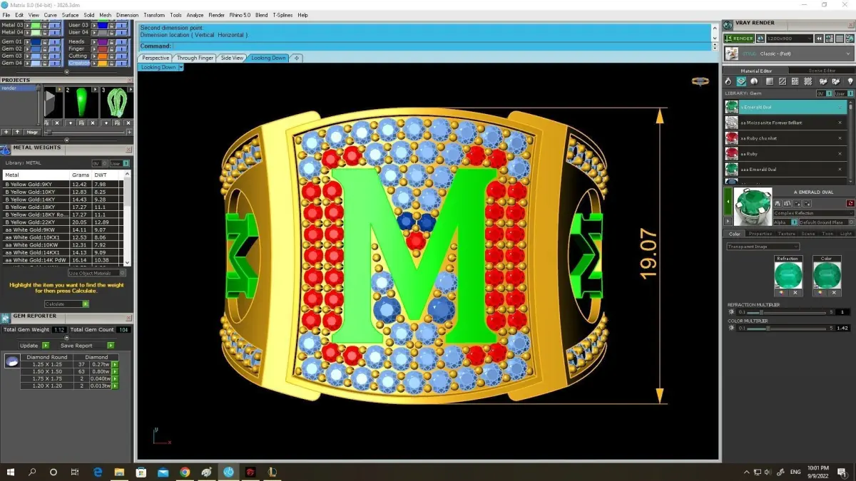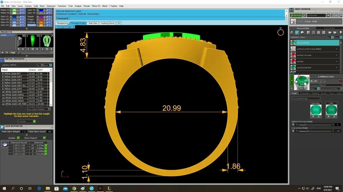 All preview images include full technical information such as dimensions, ring size, stone layout, and estimated metal weight, supporting accurate casting preparation and manufacturing planning.