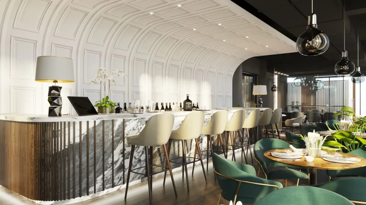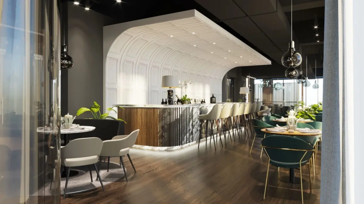 Ideal for use in architectural visualization projects, interior design proposals, and commercial real estate listings targeting affluent clientele, upscale diners, and luxury lifestyle enthusiasts.