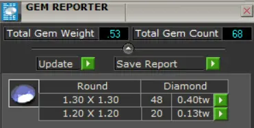 Diamond Size and Carat Weight: 68 brilliant cut diamonds. Total diamond weight 0.53 carats. Check the diamond chart attached in the image.