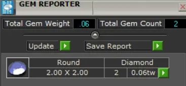 Diamond Size and Carat Weight:2 brilliant cut diamonds, each 2.00 mm in diameter.Total diamond weight 0.06 carats.Round stone, 19.50 mm in diameter.Check the diamond chart attached in the image