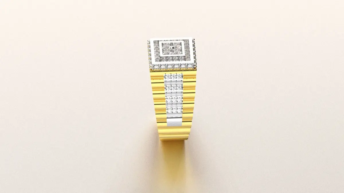 This men's ring with a unique and brilliant design is a combination of gold and diamonds, which symbolizes prestige and glory. The durable structure and detailed details reflect your strong personality and unique taste. This piece is not only a piece of jewelry, but also a symbol of your confidence, strength and unique style. The ideal choice for luxury-loving and special men who want to shine in every gathering. With this ring, always set the finishing touch on the path to success and attractiveness!