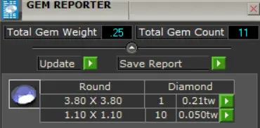 Diamond Size and Carat Weight:Total 11 Brilliant Cut Diamonds. Total Diamond Weight 0.25 Carats.1 Brilliant Cut Diamond, 3.80mm Diameter.10 Brilliant Cut Diamonds, 1.10mm Diameter.Check Diamond Chart Attached in Image