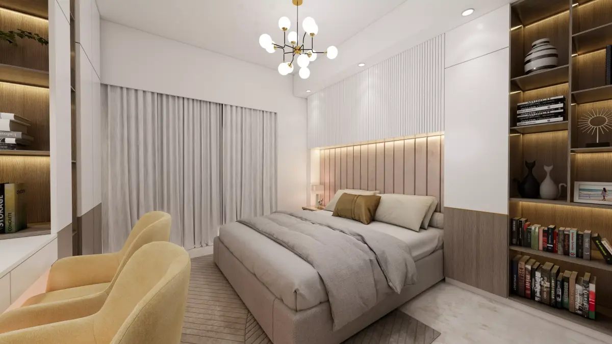 - Elegant master bedroom with a modern luxury aesthetic