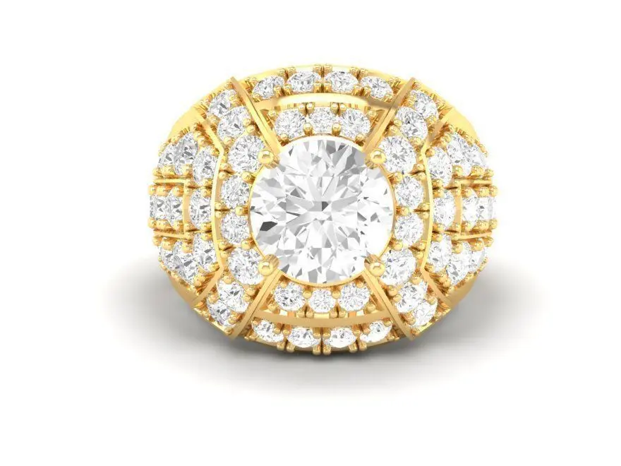 This luxury men diamond ring jewelry design is created with bold and elegant details making it perfect for modern gentlemen. The ring features a wide band covered with multiple sparkling stones around a brilliant center diamond giving a powerful and stylish look. Suitable for jewelry CAD design 3D printing or production this model highlights masculine strength combined with refined craftsmanship. Ideal for daily wear engagement statement jewelry or a special gift this design is versatile for both fashion and luxury collections.