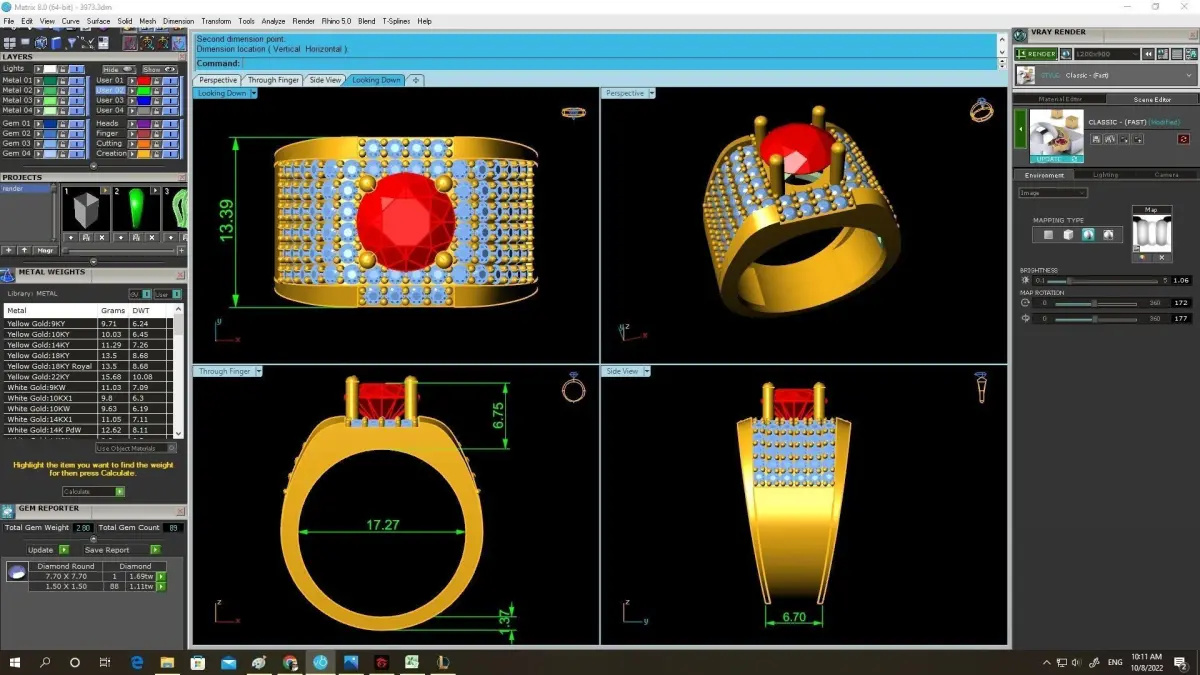 All technical specifications, including ring size, stone dimensions, stone count, and metal weight, are clearly displayed in the preview images. This allows jewelers, manufacturers, and CAD designers to accurately evaluate the model before production.