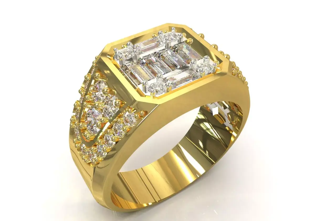 Luxury Men's Ring MR0292: Men's Cocktail with Baguette Diamonds, a Symbol of Unconditional Wealth and Splendor