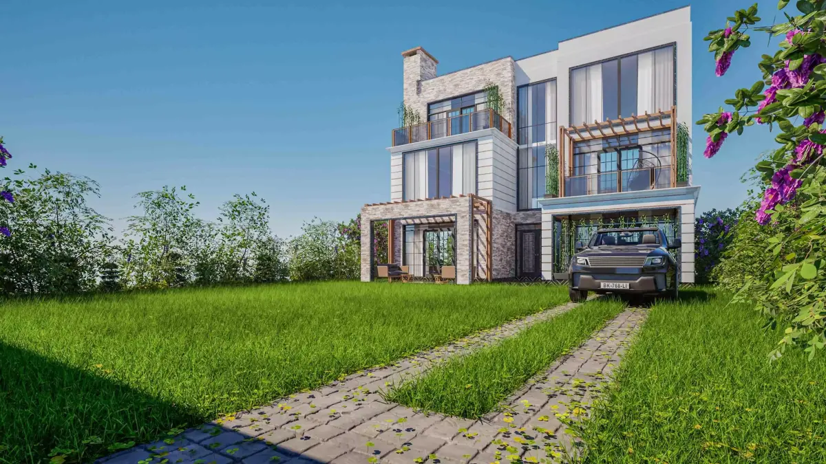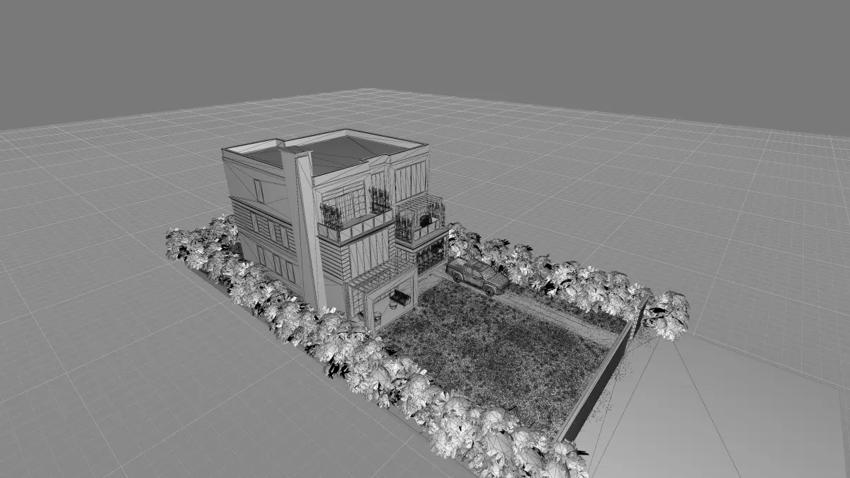 - Versatile Design: Ideal for residential developments, suburban environment builds, or architectural studies.Key HighlightsHyper-Realistic Materials: Masterfully textured using UE5’s PBR workflow, showcasing tactile stone textures, reflective glass, and warm timber.Indoor-Outdoor Flow: Designed with multiple private balconies, a ground-floor patio, and integrated greenery (bamboo and floral hedges).Optimised for UE5: Fully compatible with Lumen and Nanite for real-time global illumination and high-detail geometry without the performance hit.Versatile Design: Ideal for residential developments, suburban environment builds, or architectural studies.Product SpecificationsSource SoftwareArchicadRendering Engine Unreal Engine 5 (Lumen Ready)Architecture Style: Contemporary International / Modern MinimalistLevels3 Floors (Ground + 2)Key Features: Chimney Stack, Pergolas, Multiple Terraces, Stone VeneerIncluded Assets: Building Shell, Landscape Hedges, Driveway Textures