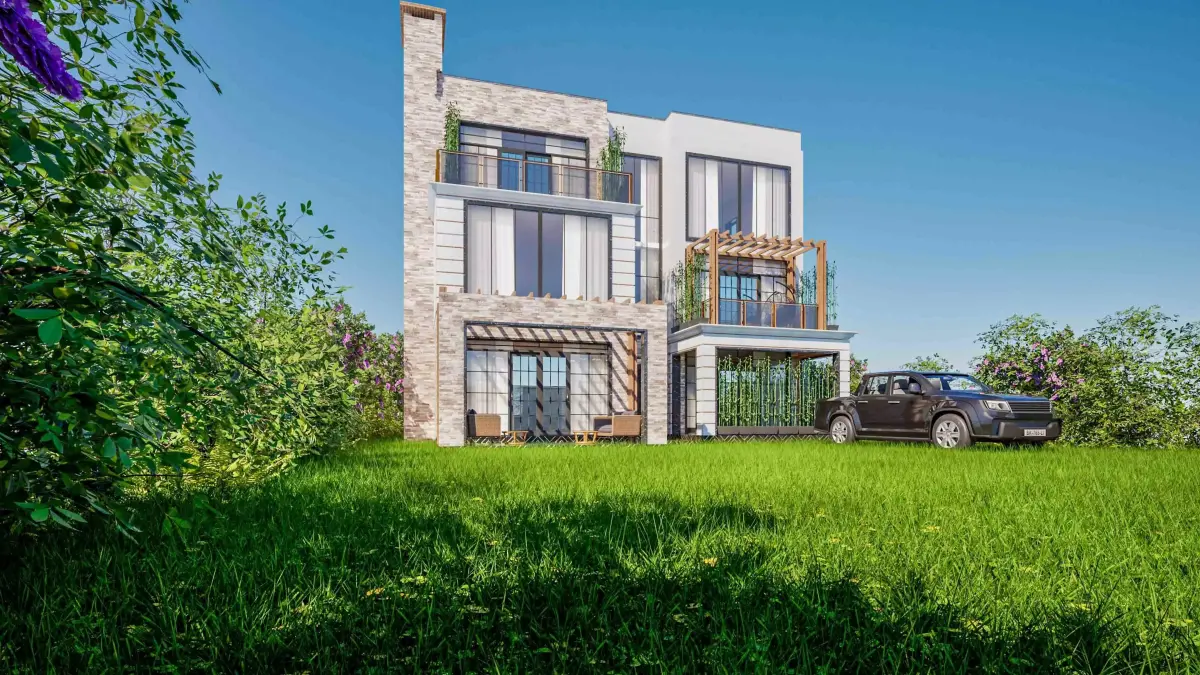 Originally designed in Archicad and rendered in Unreal Engine 5, this model balances contemporary luxury with functional residential design. Featuring natural stone cladding, floor-to-ceiling glazing, and wooden pergola accents, it's ready for high-end real estate marketing, VR, or cinematic environments.Key Features: