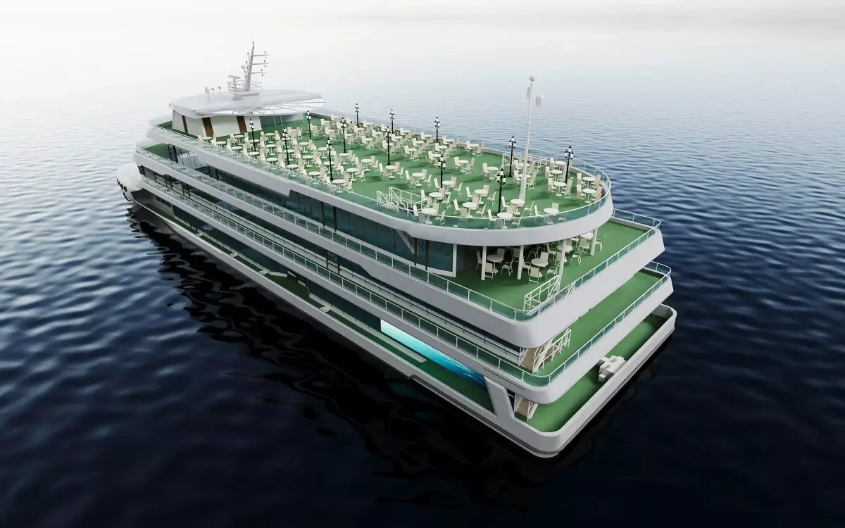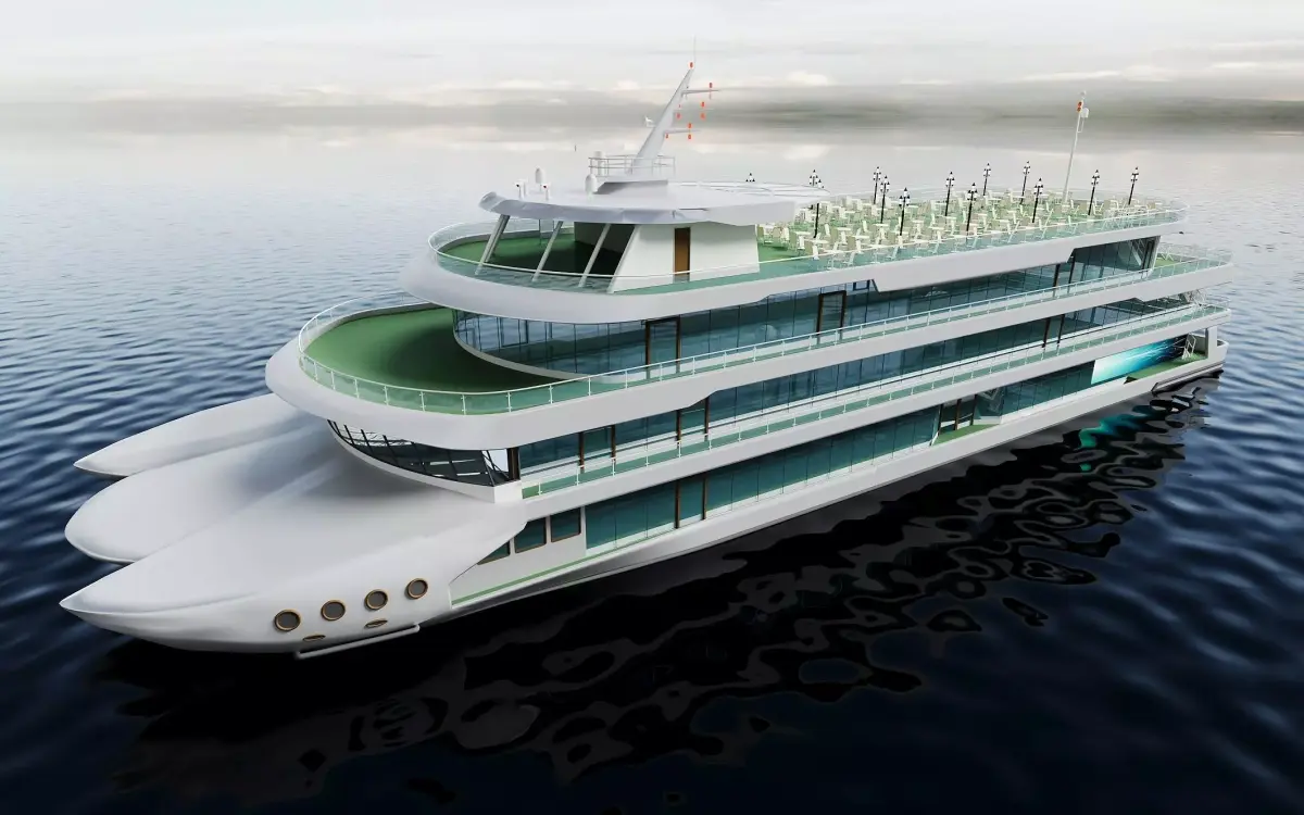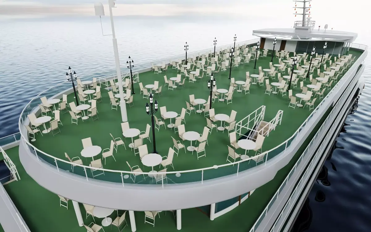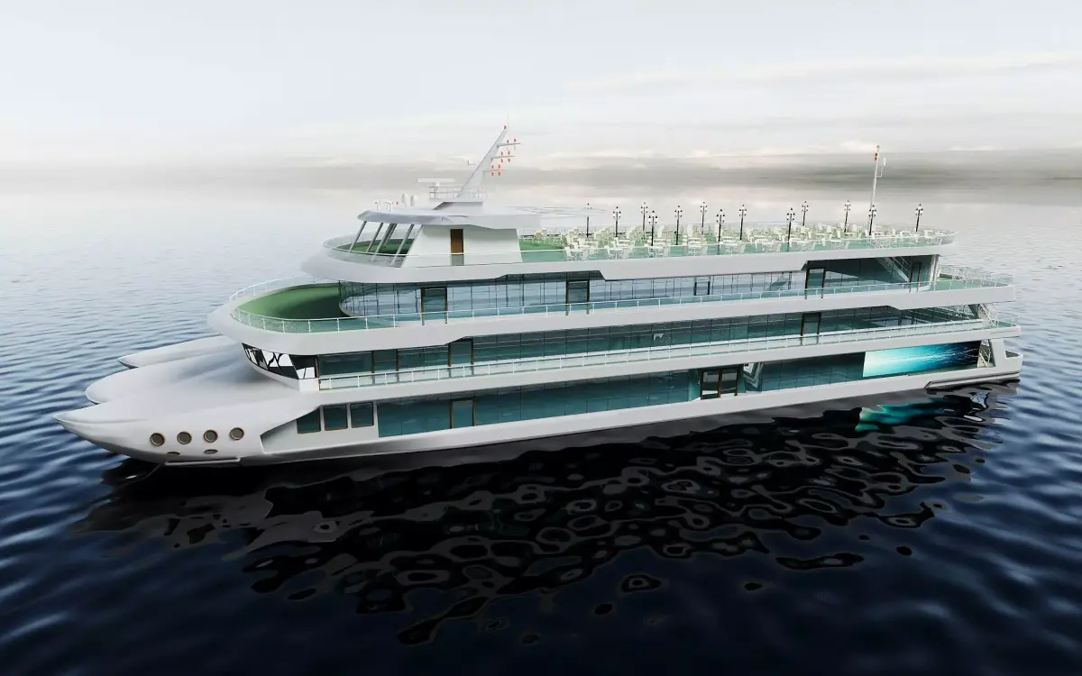 This 3D model represents a modern luxury multi-deck cruise ship, designed for premium travel, tourism, and large-scale events. Featuring sleek architecture, panoramic glass walls, and extensive outdoor seating areas, it provides a realistic and detailed representation of a high-end passenger liner.