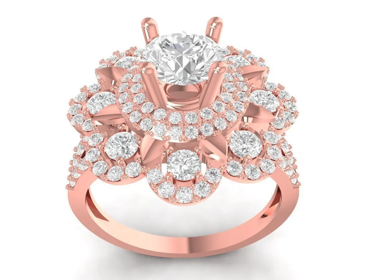 This model is ideal for materials such as yellow gold, white gold, rose gold, platinum, or silver. It accommodates center stones like diamond, moissanite, CZ, or lab-grown alternatives. Perfect for premium bridal collections, engagement designs, customization services, or visualization projects, this multi-halo ring delivers outstanding brilliance and a glamorous aesthetic for modern women.