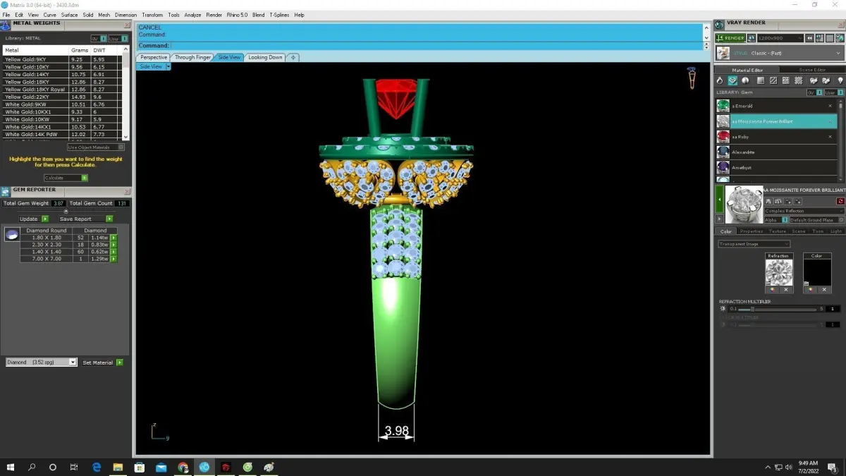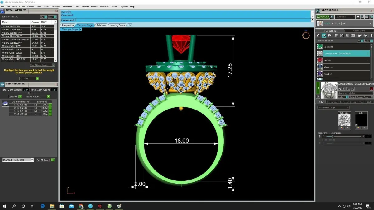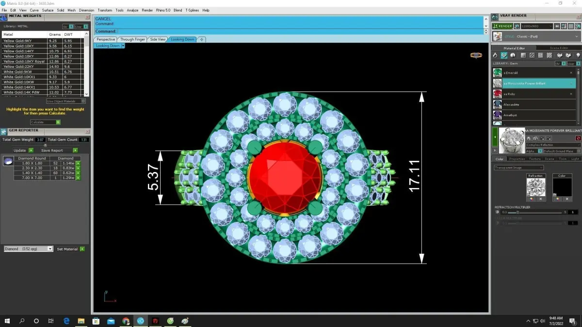The model includes clean geometry, optimized wall thickness, and accurate stone seats to ensure excellent casting performance and smooth stone setting. The tall gallery construction allows light to pass through the center ruby, maximizing brilliance and color intensity. All required technical specifications—including stone sizes, halo dimensions, cross section, and overall proportions—are shown in the preview CAD images for precise workshop use.