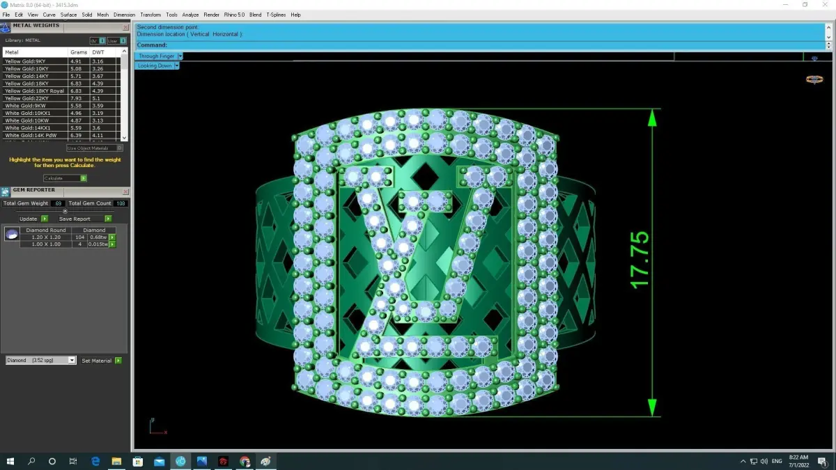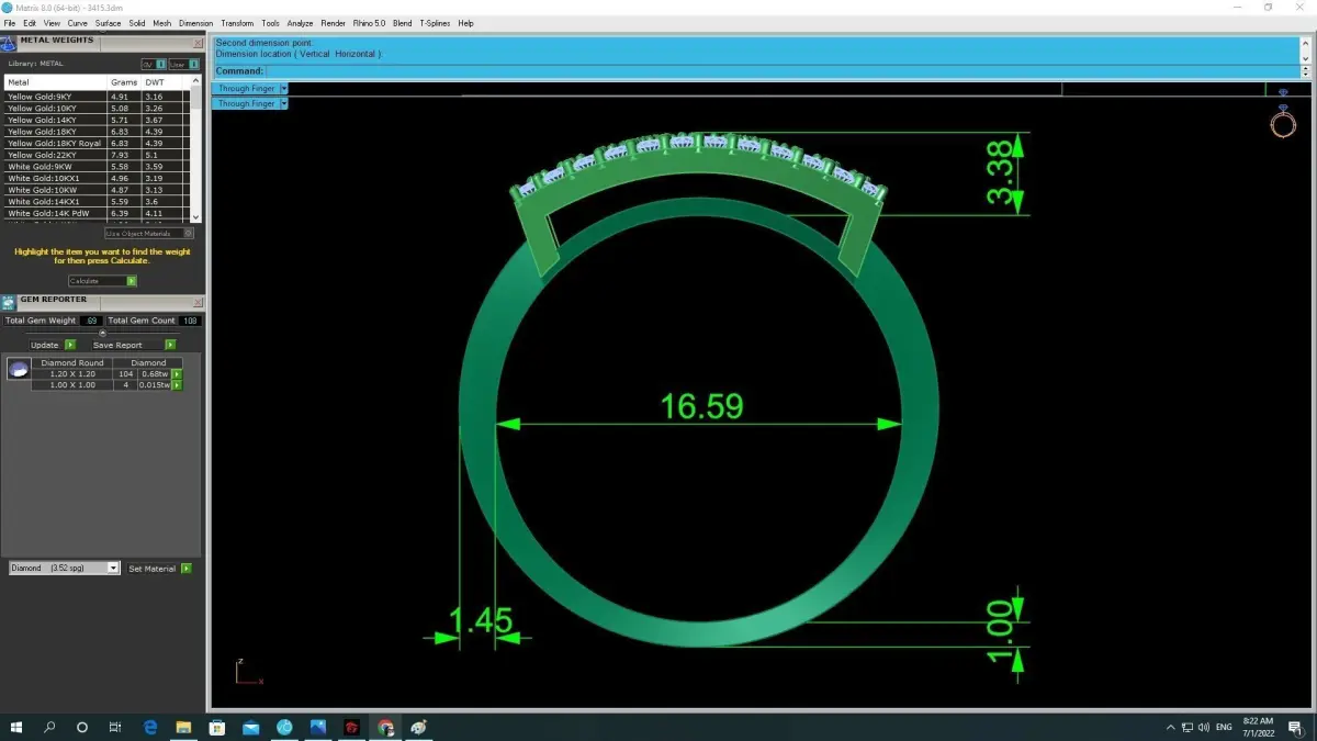 The model includes clean topology, precise prong geometry, and accurate stone seats to ensure compatibility with professional manufacturing methods such as 3D printing, CNC milling, and lost-wax casting. CAD preview images display detailed measurements, thickness information, and stone layout for reliable production workflow.