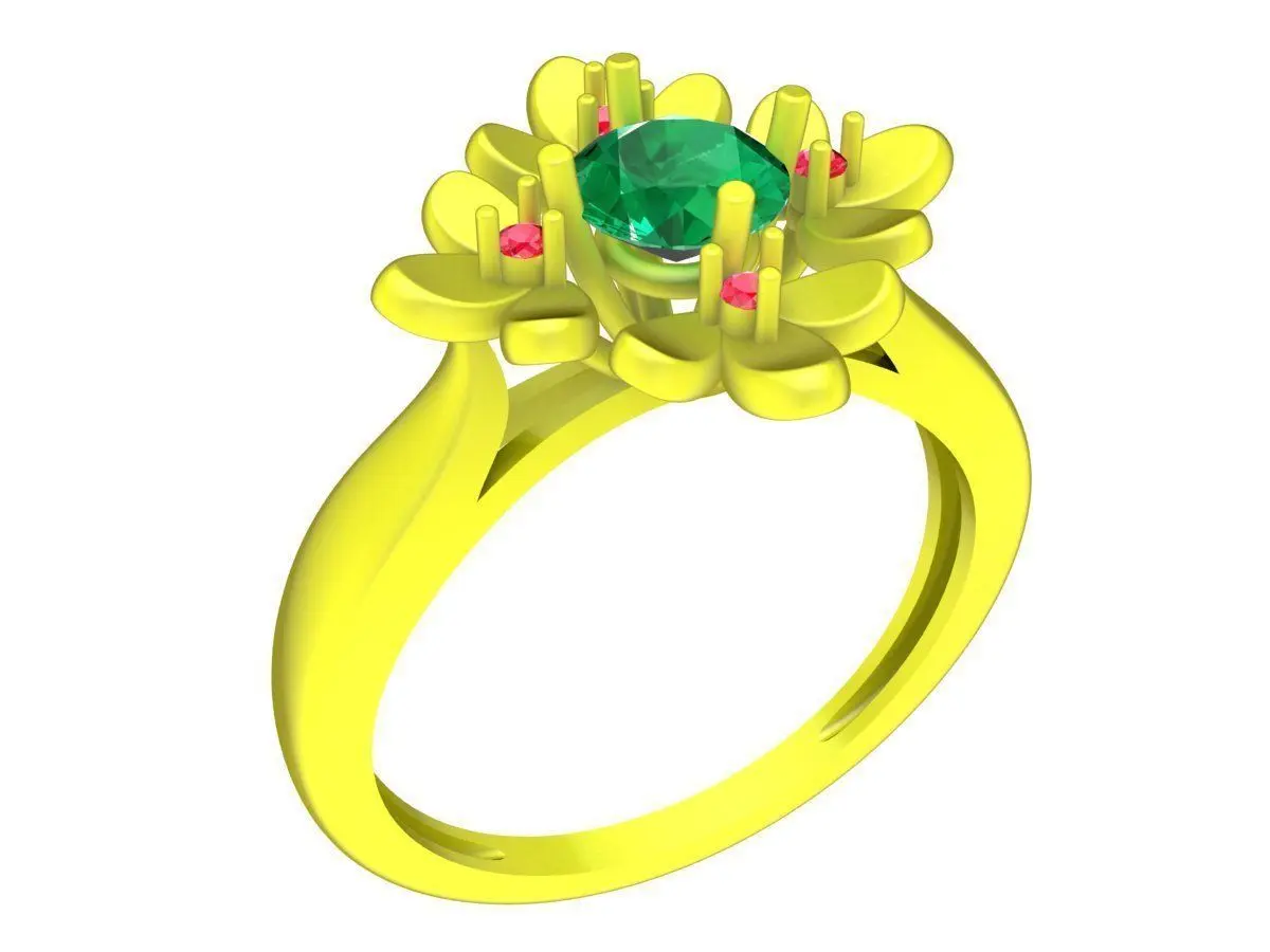 Suitable for production in precious metals such as gold, silver, platinum, or other alloys, this design is ideal for jewelers, manufacturers, and designers seeking a premium floral gemstone ring model ready for commercial production.