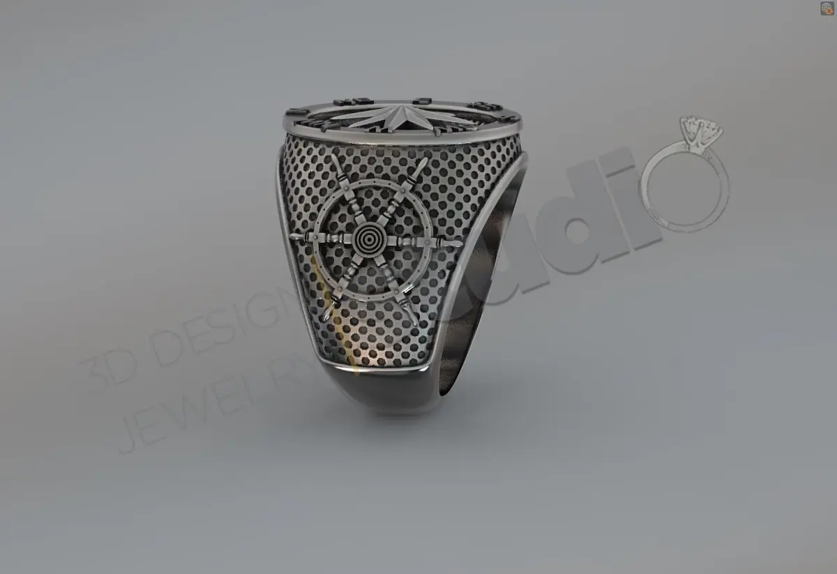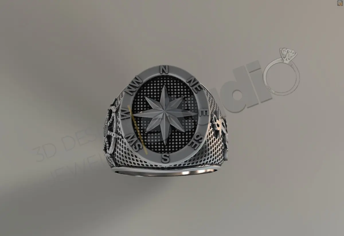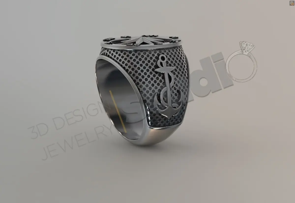 Luxury navy anchor compass sevalie ring 3d model deisgn 3D print model