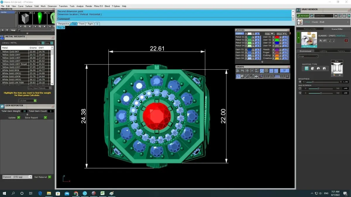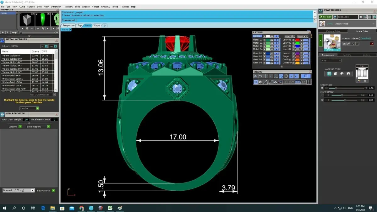 This 3D model is fully optimized for jewelry manufacturing processes such as casting, CNC milling, and 3D printing. All dimensions, stone sizes, thicknesses, and weight information are clearly shown in the preview images to support accurate production planning. The design supports ruby, diamond, CZ, or other gemstones and can be produced in gold, silver, or platinum.
