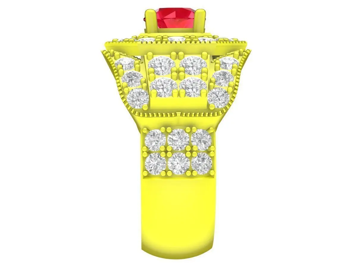 This luxury octagonal halo gemstone men ring 3D model is a bold and highly detailed jewelry design created for professional jewelry production. The ring features a strong octagonal centerpiece with a prominent square or cushion cut center stone, surrounded by multiple layers of pavé set accent stones. The structured geometry and symmetrical layout create an impressive iced out appearance with maximum brilliance and depth.