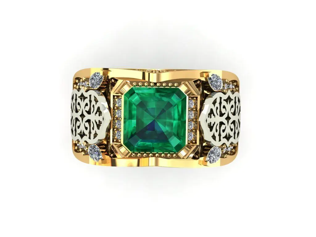This is a highly detailed ornate gemstone ring designed for 3D printing, rendering, and a jewelry production. Featuring intricate engravings and a stunning gemstone setting, this model is perfect for jewelry designers, 3D artists, and manufacturers.