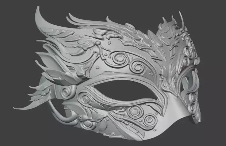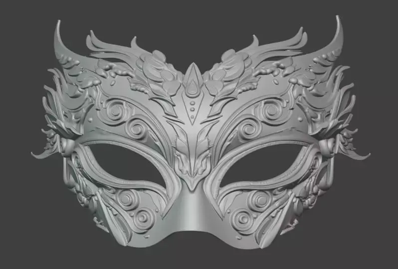 This premium 3D model features an elaborate masquerade mask inspired by baroque and fantasy aesthetics. The design showcases flowing ornamental patterns, layered metallic detailing, feather-like extensions, and symmetrical sculpting that gives the mask a luxurious and dramatic presence. Fine engravings, smooth curves, and sharp edges make it ideal for high-end decorative prints, cosplay props, wall decor, festival masks, and collector displays.