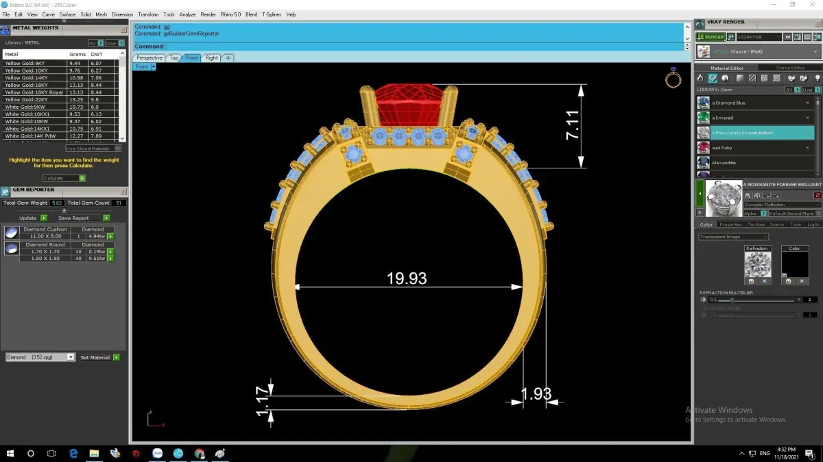 The model is fully engineered with precise stone seats, clean prong geometry, and accurate proportions, ensuring reliable production in 14K, 18K gold, platinum, or silver. All measurements, stone sizes, and estimated metal weights are clearly shown in the preview images, supporting efficient casting, stone setting, and manufacturing planning.