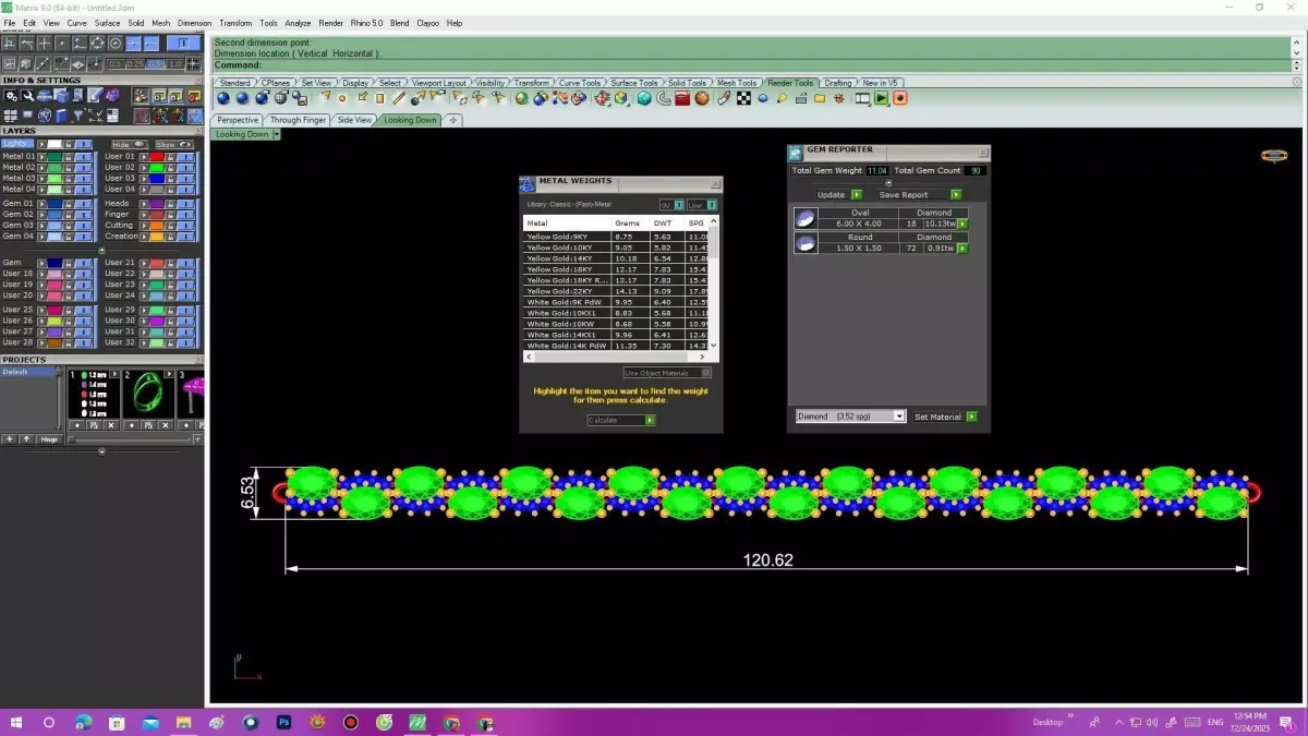 All technical specifications, including stone dimensions, stone count, metal weight, and overall bracelet length, are clearly displayed in the preview images. This allows jewelers, CAD designers, and manufacturers to accurately assess the model before fabrication.
