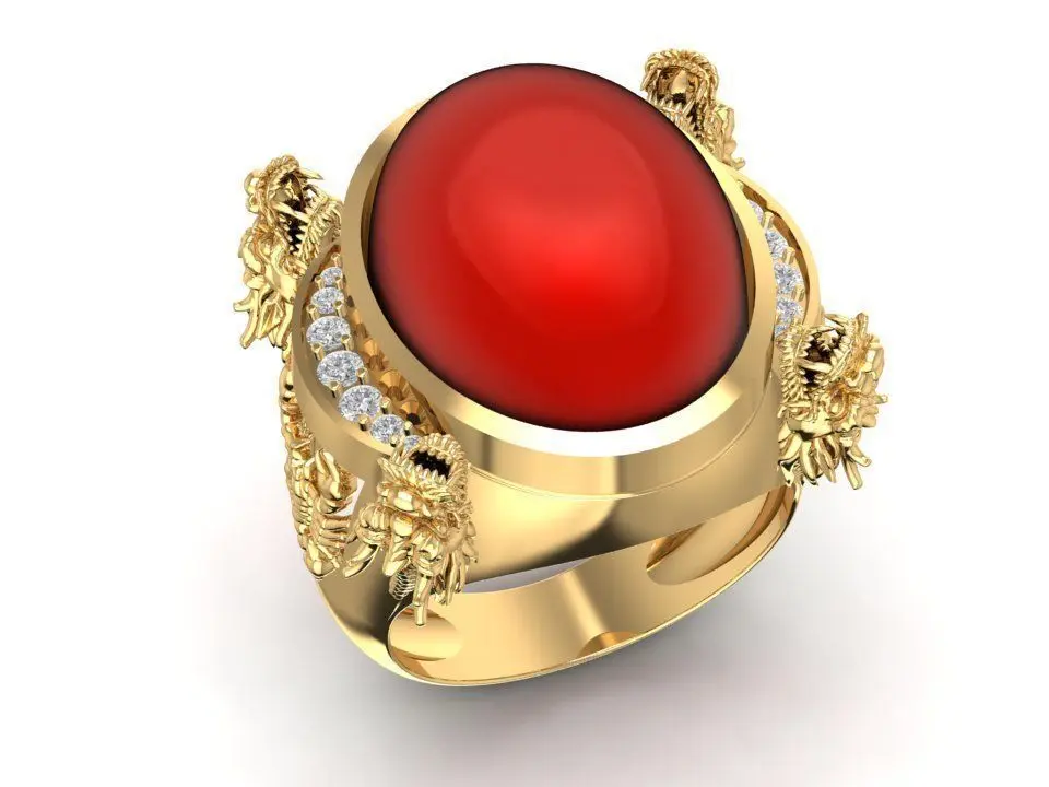 This design is ideal for men’s fashion rings, statement accessories, Asian-inspired jewelry, and custom luxury pieces. It can be produced in gold, silver, or platinum, and accommodates various gemstone options such as ruby, black onyx, coral, or cabochon stones. All preview images accurately represent the finished model, making it highly suitable for professional jewelry workshops and online customization businesses.