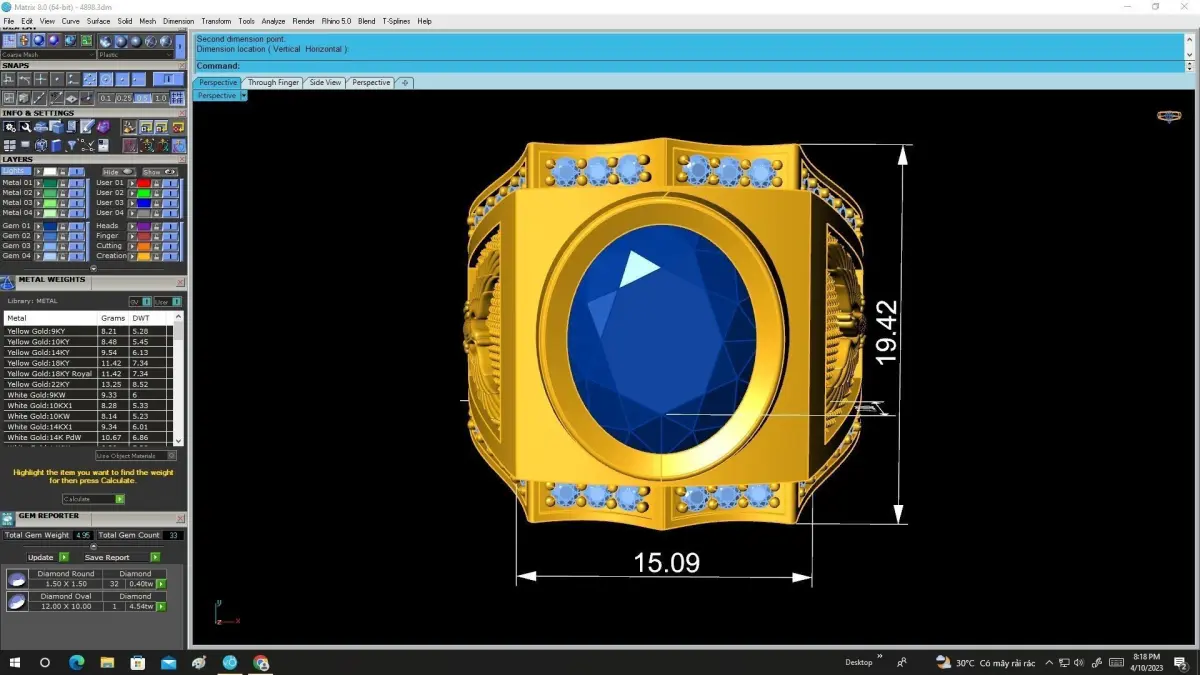 The 3D model is professionally prepared for jewelry manufacturing, suitable for 3D printing, wax carving, and metal casting. All preview images clearly show measurements, estimated weight, stone size, and technical details to support accurate production and customization.