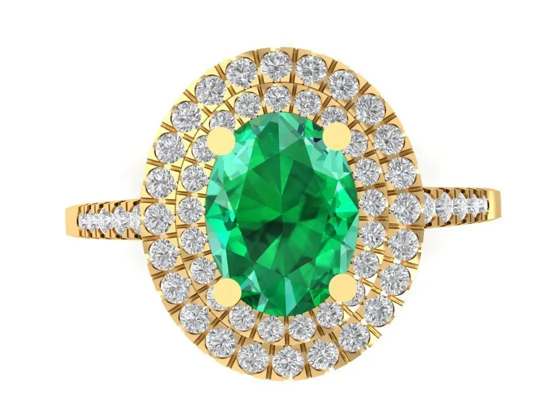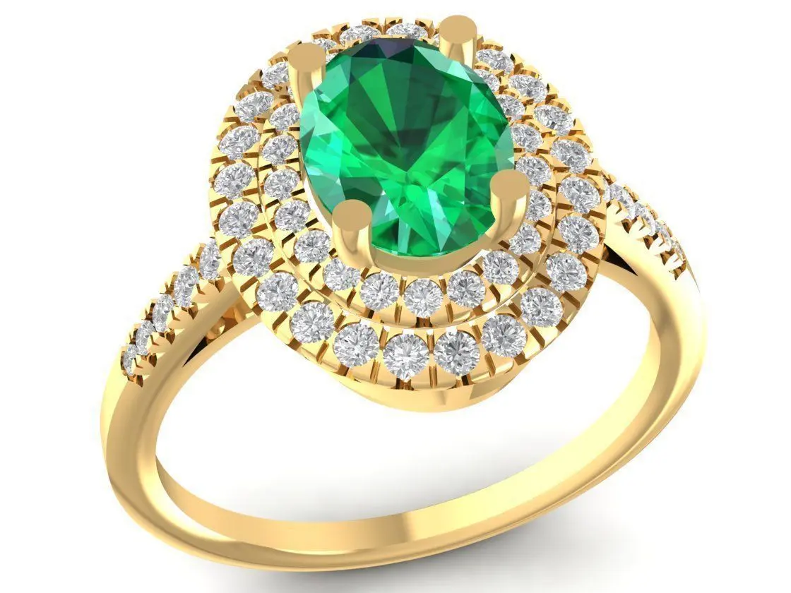 Home Catalog Luxury Oval Green Gemstone Double Halo Diamond Ring 2637 3D print model
