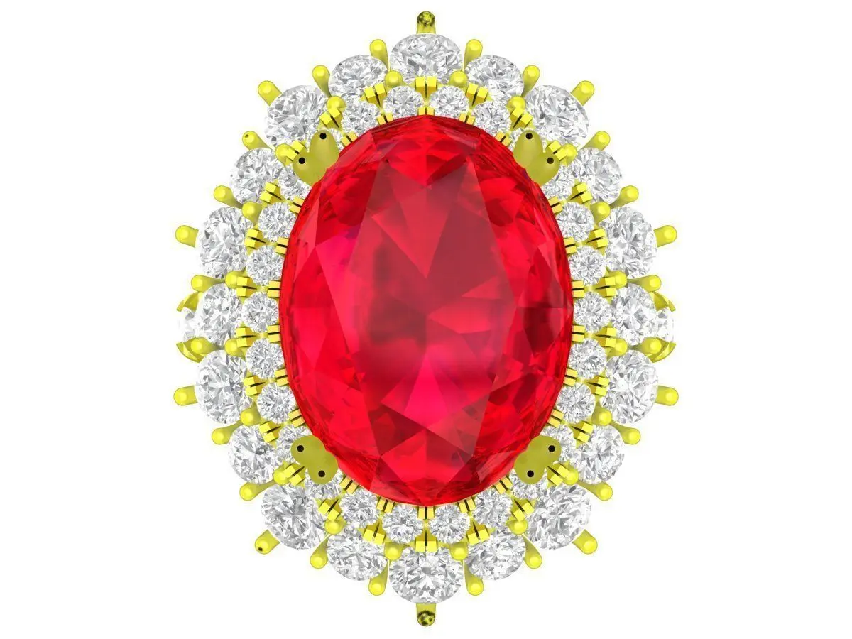 This luxury oval halo ruby style gold ring is a sophisticated and glamorous jewelry design, created for high-end women’s and bridal collections. The ring features a large oval-cut red center gemstone held in an elevated prong setting, allowing maximum light exposure and enhancing brilliance and color intensity. Surrounding the center stone is a perfectly proportioned halo of round accent stones, creating a radiant and timeless silhouette.