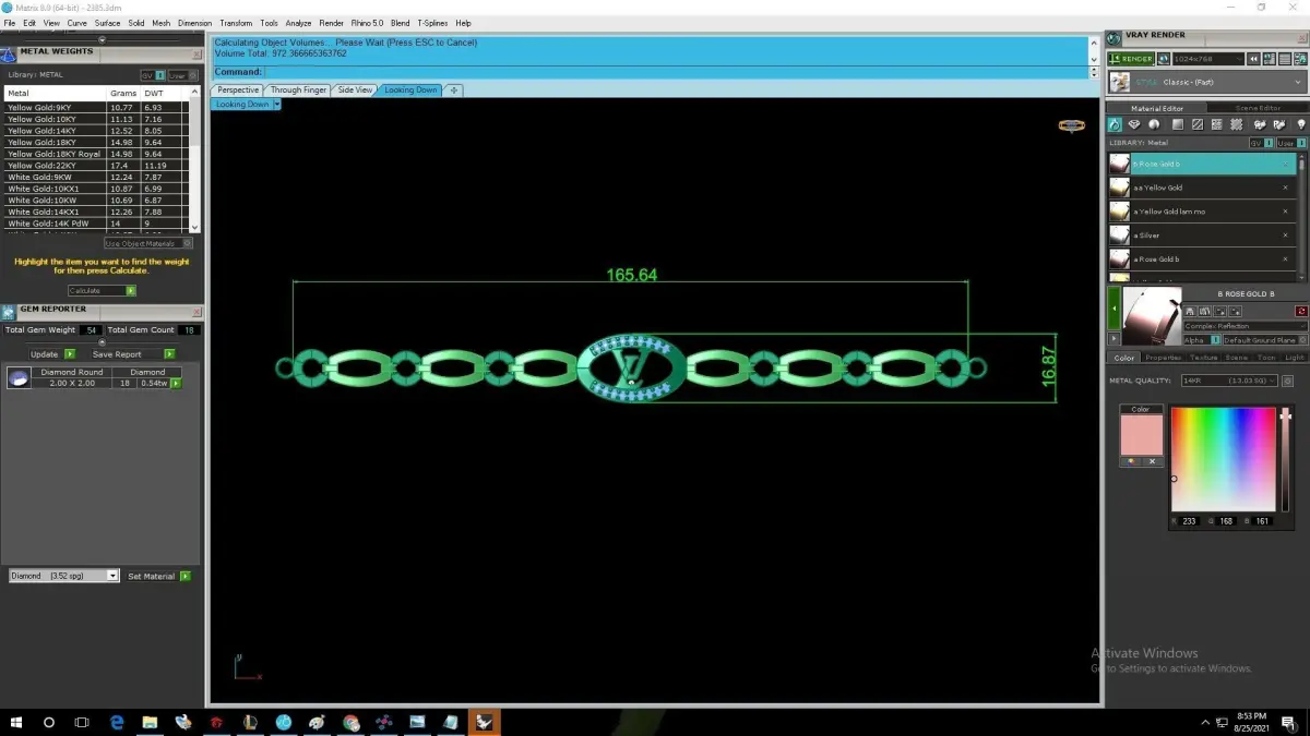 All technical details, including link dimensions, center element size, stone layout, bracelet length, and metal weight, are clearly displayed in the preview images to support accurate evaluation before manufacturing.