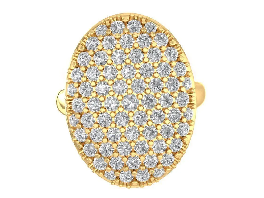 This luxury women’s ring features an elegant oval-shaped top fully set with pavé diamonds, creating a bold yet refined statement design. The clustered pavé arrangement maximizes brilliance and surface sparkle, while the smooth band structure maintains balance and comfort for everyday or special occasion wear.
