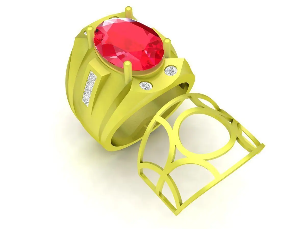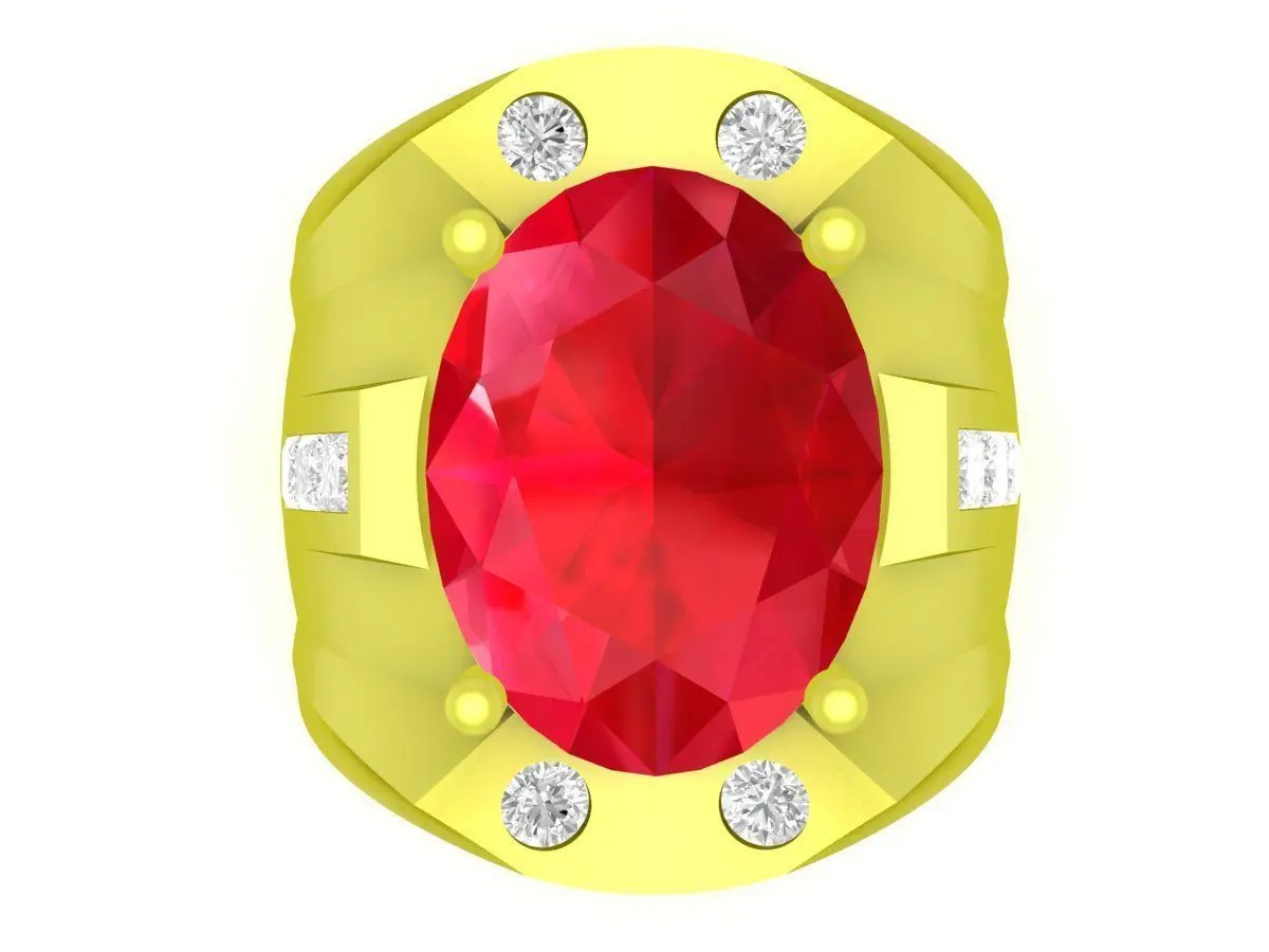 This luxury oval ruby and diamond statement ring is a professional 3D jewelry model designed for high-end men’s jewelry production. The design features a prominent oval-cut center gemstone, surrounded by clean diamond accents integrated into a solid and masculine ring structure.