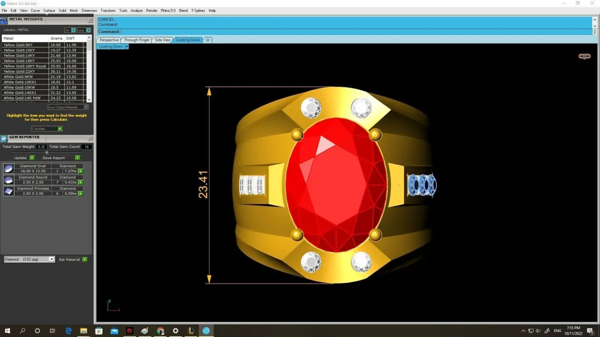 All essential technical specifications such as dimensions, gemstone sizes, stone counts, and estimated metal weight are clearly displayed in the preview images. This enables jewelers and manufacturers to accurately assess the model before casting.