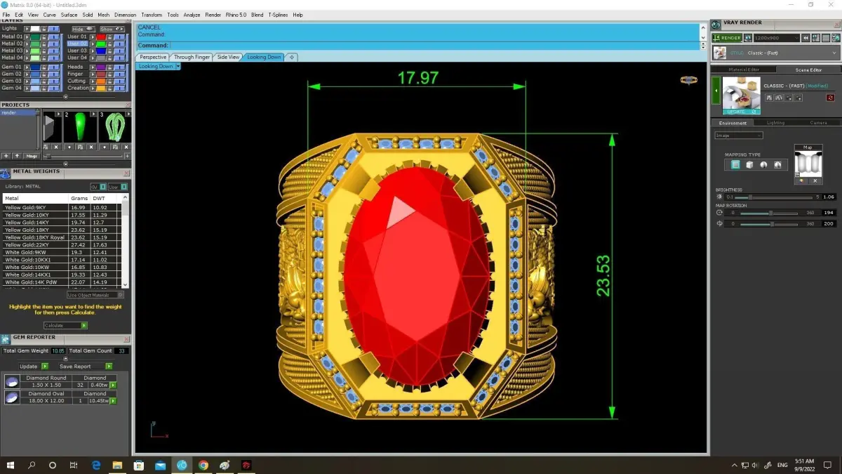 Designed for professional jewelry manufacturing, this 3D model includes clearly displayed dimensions, stone sizes, stone quantities, and metal weight in the preview images. The geometry is clean, casting-ready, and optimized for stone setting, polishing, and customization.