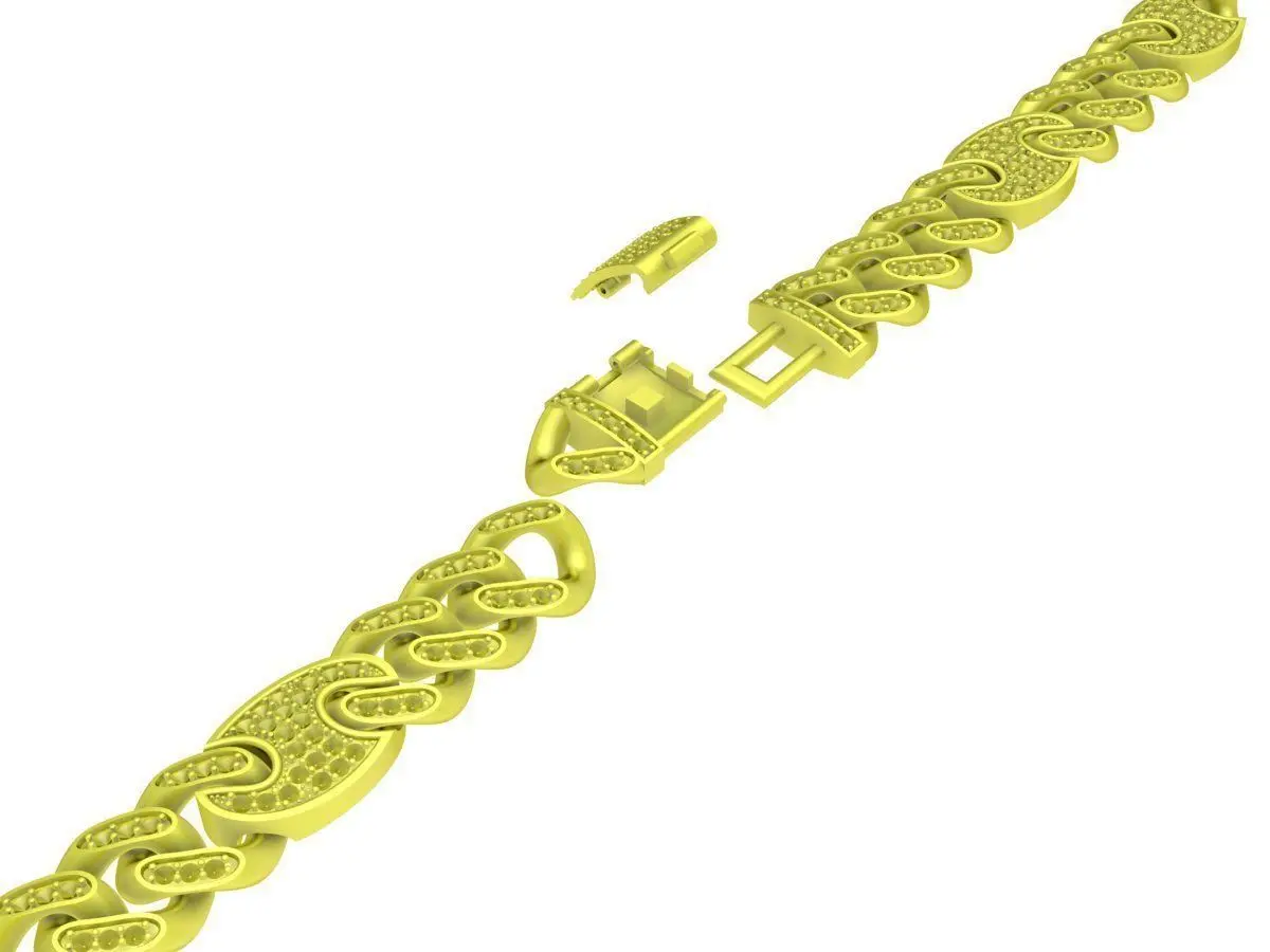 This luxury pave Cuban link bracelet is a high-quality 3D jewelry design featuring a bold chain structure combined with detailed pave stone settings. Each Cuban link is precisely modeled to ensure smooth connections, consistent proportions, and a strong visual flow along the entire bracelet.