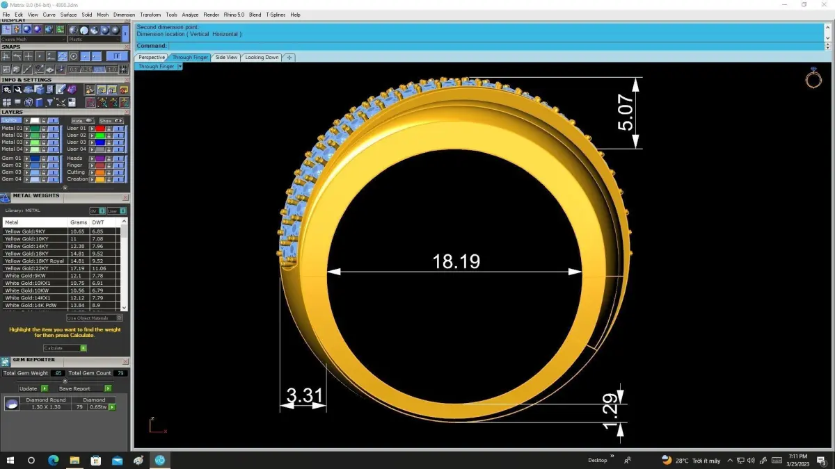 The model is professionally designed for jewelry production and suitable for gold, silver, or platinum manufacturing. All technical details such as dimensions, ring size, stone size, stone count, and estimated metal weight are clearly displayed in the preview images, making it easy for jewelers and manufacturers to evaluate and produce.