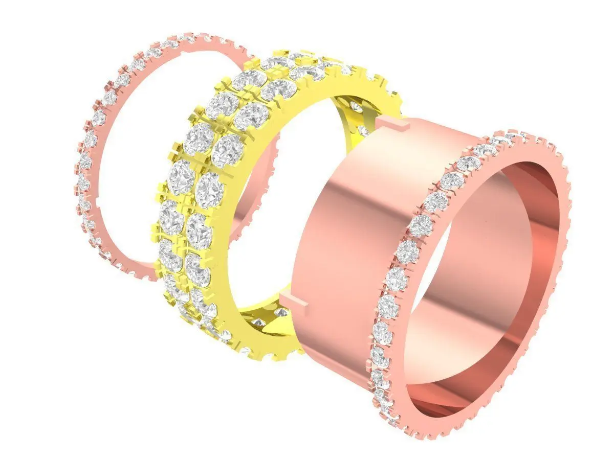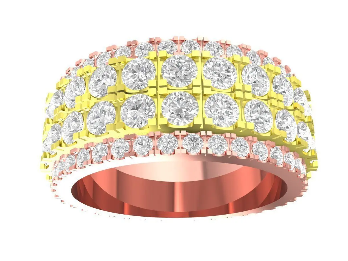 This luxury pavé diamond band ring is a high-quality 3D jewelry model designed for professional jewelry manufacturing and custom production. The ring features a wide band structure with multiple rows of pavé-set round stones, creating a bold yet elegant appearance suitable for modern women’s jewelry collections.