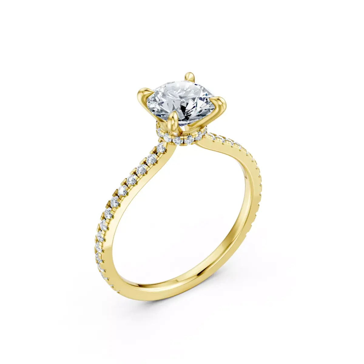 This luxury pavé solitaire diamond ring CAD model showcases a brilliant round-cut center stone set in a refined and secure prong setting, complemented by a slim pavé diamond shank that adds elegant sparkle from every angle. The design features clean lines, balanced proportions, and a graceful profile, making it ideal for premium engagement and bridal jewellery collections.