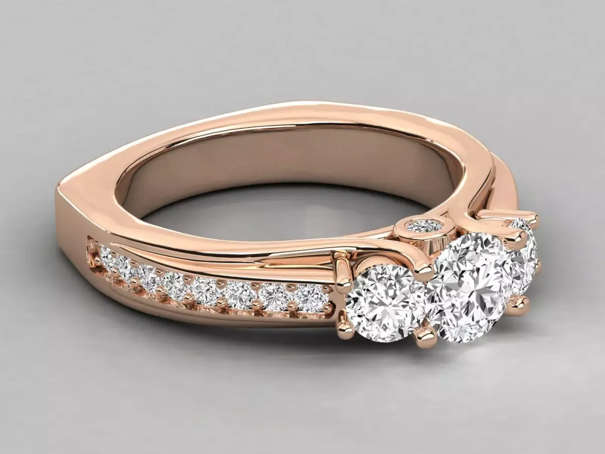 This luxury pavé three stone diamond ring CAD design is created with a refined blend of elegance, strength, and modern jewellery aesthetics. The design showcases a prominent round center diamond supported by two side stones, forming a balanced three stone composition that symbolizes timeless beauty and sophistication. Pavé-set diamonds along the band enhance brilliance and add a premium visual depth to the overall structure.